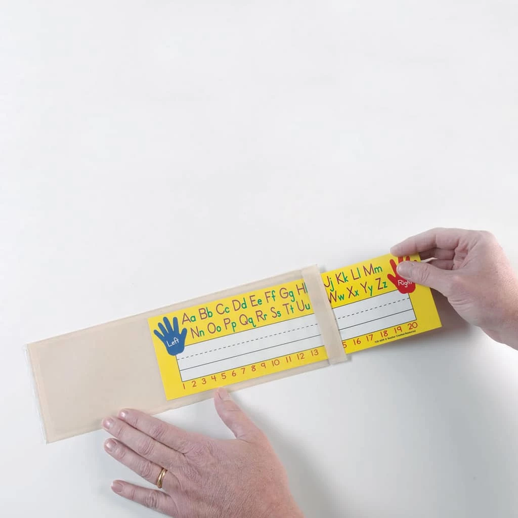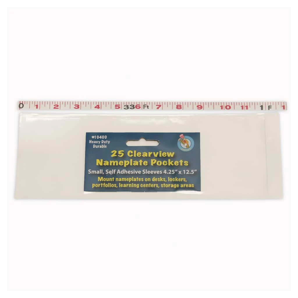 Use this convenient and easy small, clear name plate pocket to protect your nameplate. Simply open the pocket, slip in your nameplate, remove the backing, position pocket and stick!