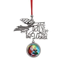Decorate your tree with a piece of history. The Joy to the World Santa JFK Half Dollar Coin Christmas ornament will add color, beauty and history to your tree. A genuine JFK Half Dollar colorized with an image of Santa using a special ink process is set in a pewter bezel and hangs from an angel heralding Joy to the World Christmas ornament. The JFK Half Dollar minted from 1964 to present was designed by Gilroy Roberts and Frank Gasparro and features the profile of President John F. Kennedy on the obverse and the Presidential Seal on the reverse. The Santa design titled Wishes of Hope and Peace features Santa listening to a little girl’s Christmas wish. The pewter ornament features an angel, stars and the words Joy to the World. The ornament comes in a blue pouch and includes a Certificate of Authenticity.