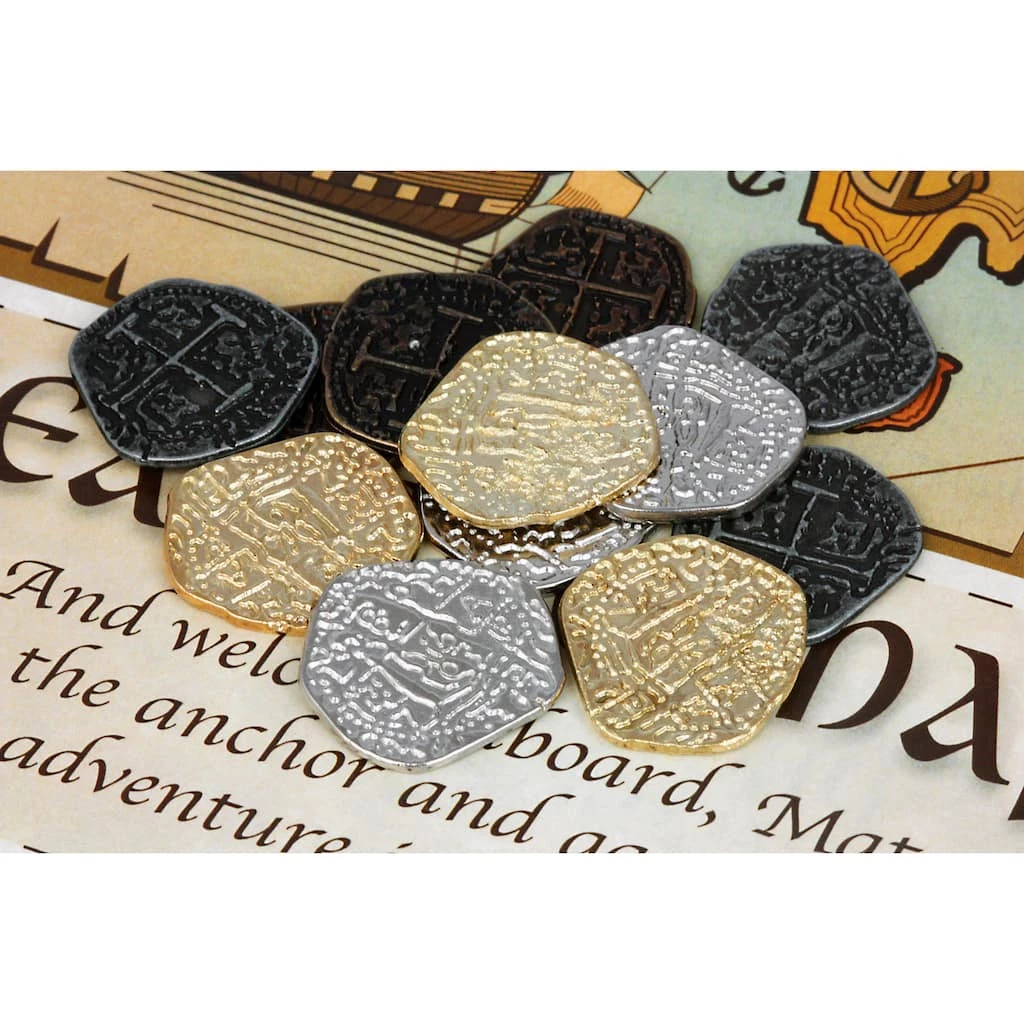 - 6 gold tone replica pirate coins