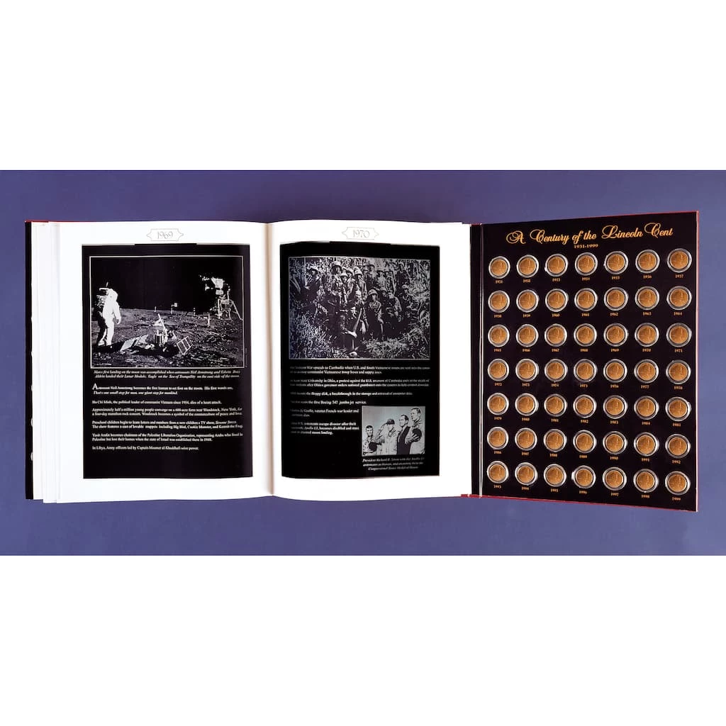 Introduced in 1909 on the centennial of Abraham Lincoln’s birth, the Lincoln Penny is still minted today. Beautifully bound, this historic Limited Edition Anthology relives each year the coin was issued through 1999. Beginning in 1909, the historical highlights of every year through 1999 are accompanied by fascinating original photos. One Lincoln Penny from each year is included, even the rare 1922 issue! A splendid tribute to a legend in American coinage, and an extraordinary momento of a legendary period in history. Coins are housed in capsules to keep protected from dust and dirt. A Certificate of Authenticity is included. The book measures 10 by 13 inches and has 92 pages.