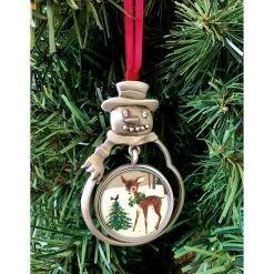 The perfect gift for someone who loves vintage trucks and Christmas. A genuine United States Quarter is colorized using a special ink process with a fun image of a holiday green truck. The Washington Quarter was first minted in 1932. The quarter mint years will range from 1965 to present. The bezelled Christmas green truck quarter hangs in the center of a fine pewter snowman ornament. The snowman ornament measures 2.75 inches tall. The ornament comes with a red ribbon in a blue jewelry pouch and includes a Certificate of Authenticity. All years and mint marks will vary.