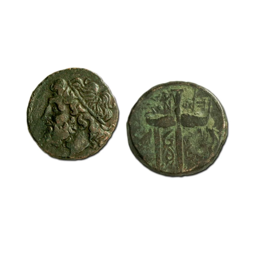 Issued: 275-215 BCE Material: Bronze Weight: 5.8-7.5 g Obverse Reverse Denomination: AE 19 Diameter: 17-21 mm Head of Poseidon Trident & dolphins
