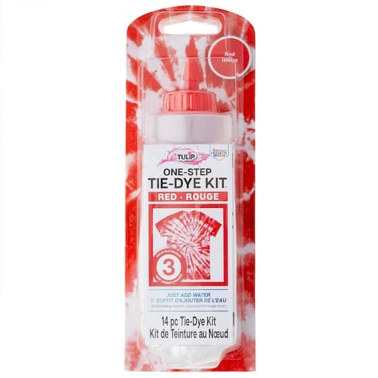 Create beautiful tie dye t-shirts, totes, scarves and more using this Tulip one-step tie dye kit. You can use this kit to add vibrancy to your drapes, bedsheets, pillow cases and more. Simply add water to the dye bottle, shake well and apply to tied fabrics.